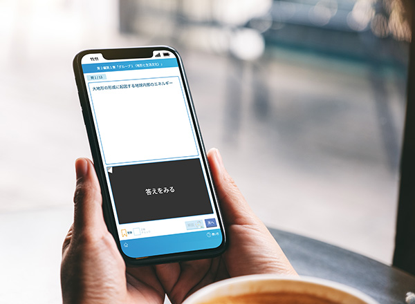 教科書の重要用語を一問一答形式で確認できます。学習履歴を先生へ提出できます。