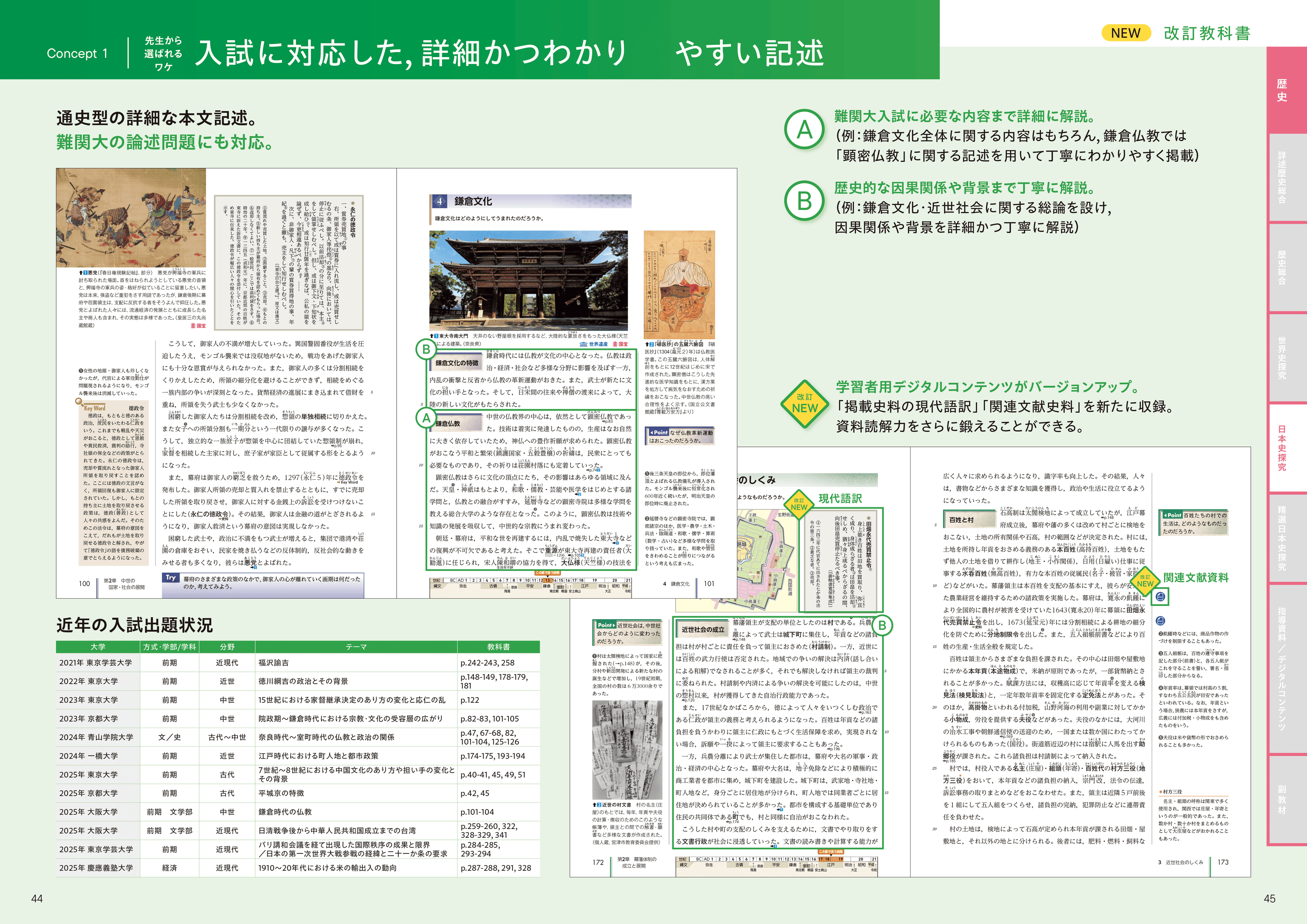 難関大の論述問題にも十分対応できるよう、因果関係や背景をわかりやすく記述。近年の研究成果を意欲的に、わかりやすく掲載。