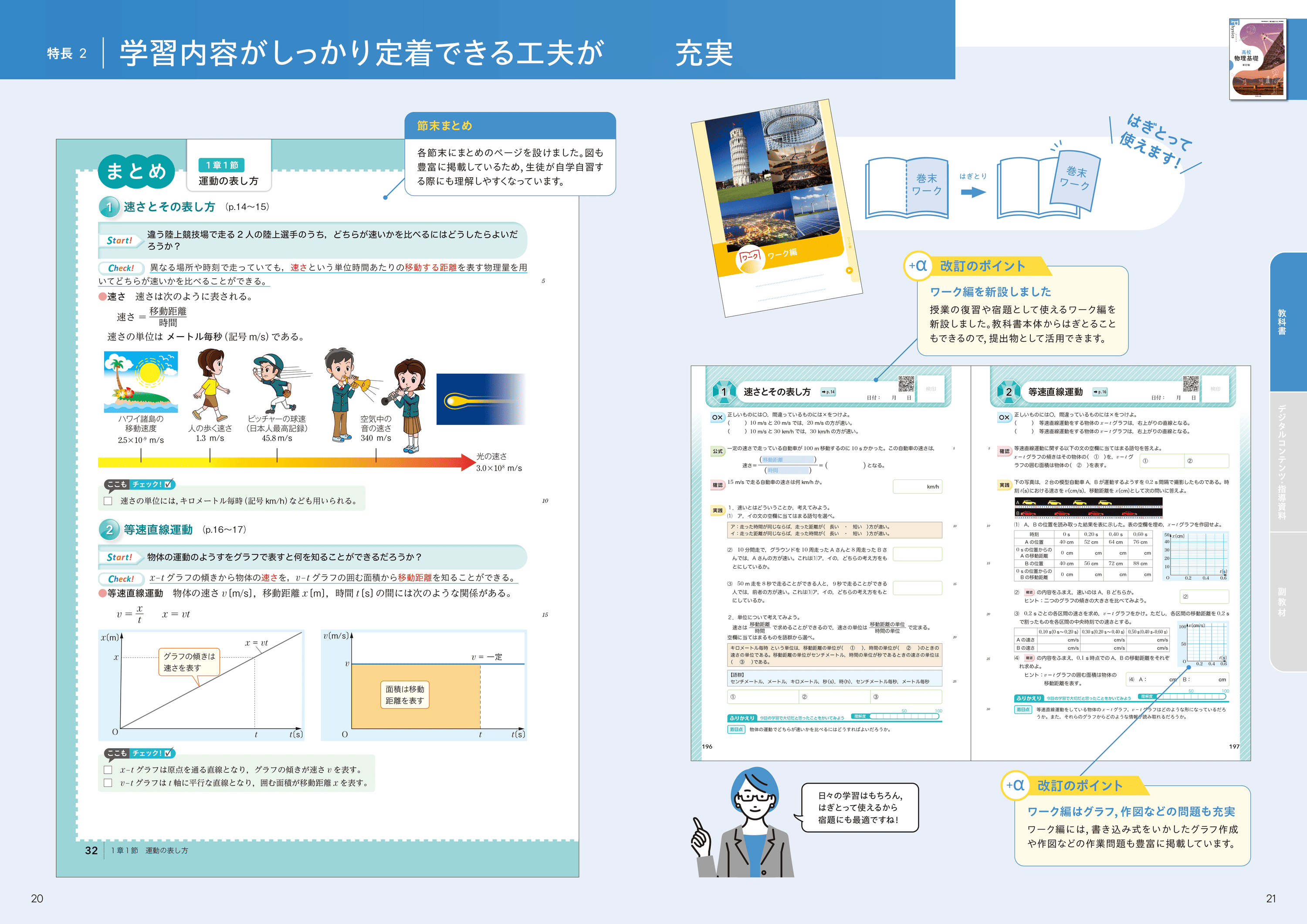 新たに授業の復習や宿題として使える、教科書本体から切り離し可能なワーク編をご用意。グラフや作図問題など、書き込み可能で、提出物としても利用できます。