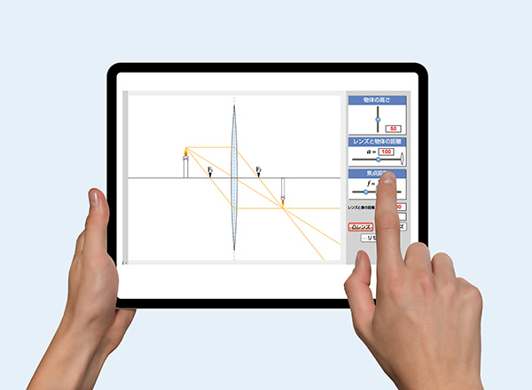 凸レンズや凹レンズによる像のでき方を学習できるアプリです。