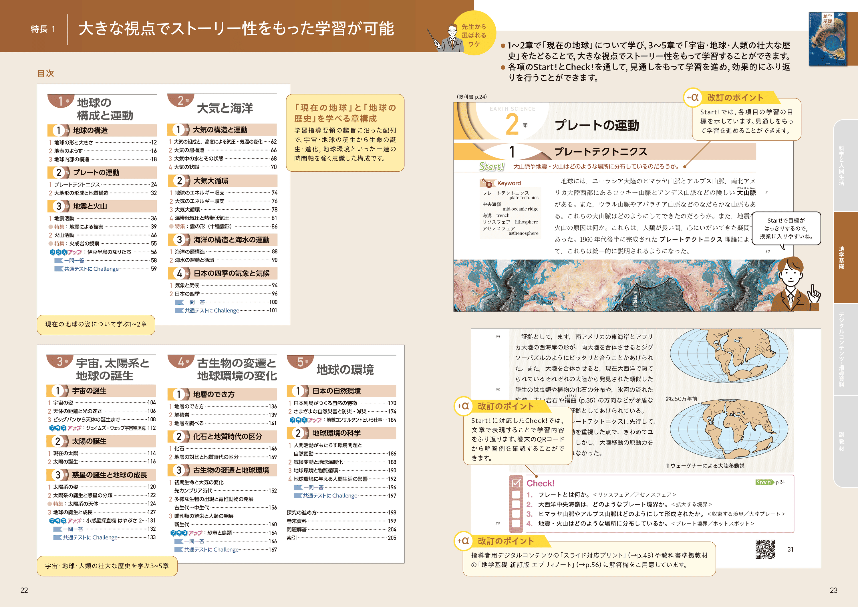 「現在の地球」と「宇宙・地球・人類の壮大な歴史」をたどることで、大きな視点でストーリー性をもって学習することができます。