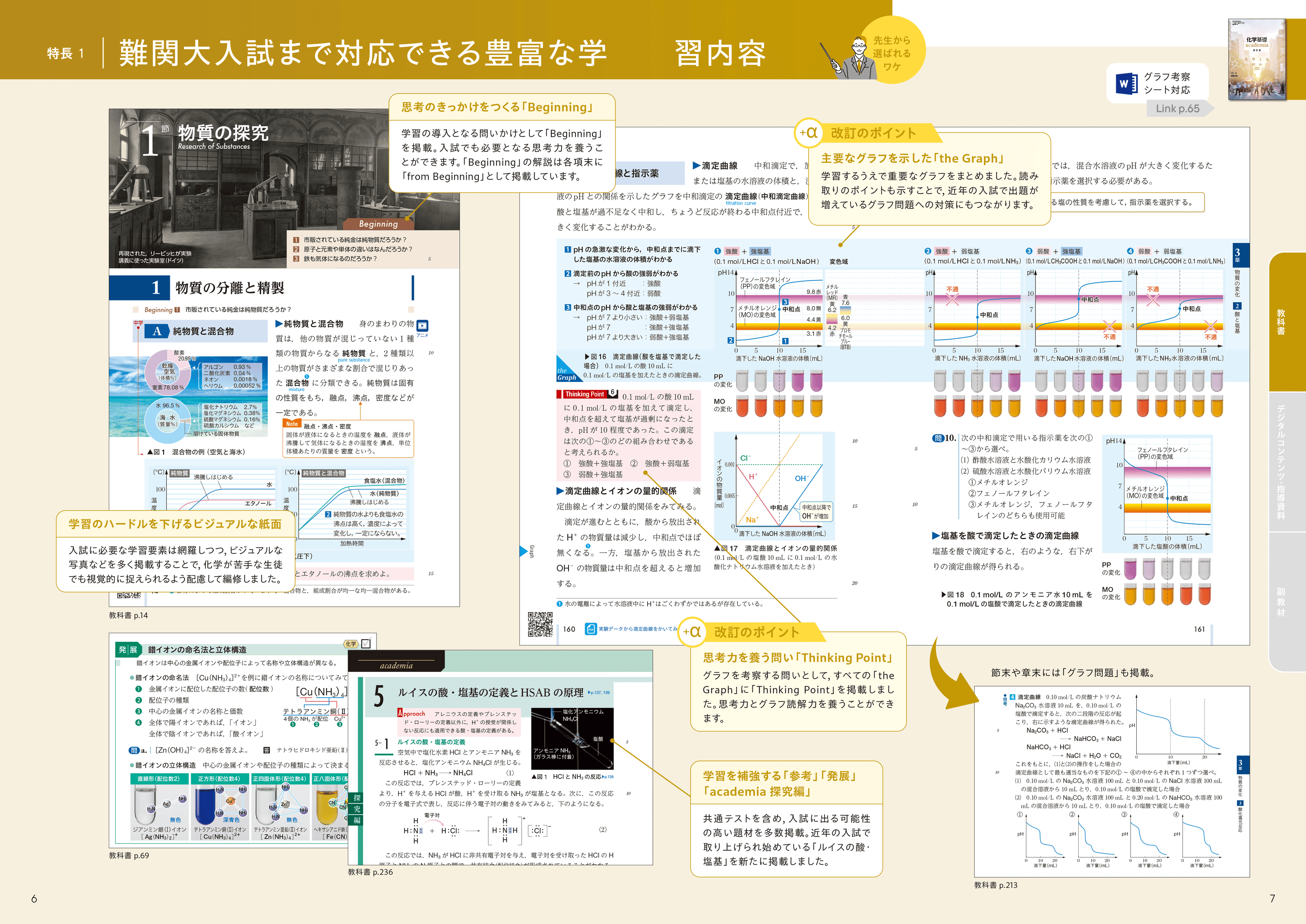 主要なグラフを示した「the Graph」を新設しました。読み取りのポイントを示し、入試に必要なグラフ読解力を養います。また、節末や章末に「グラフ問題」を新設しました。