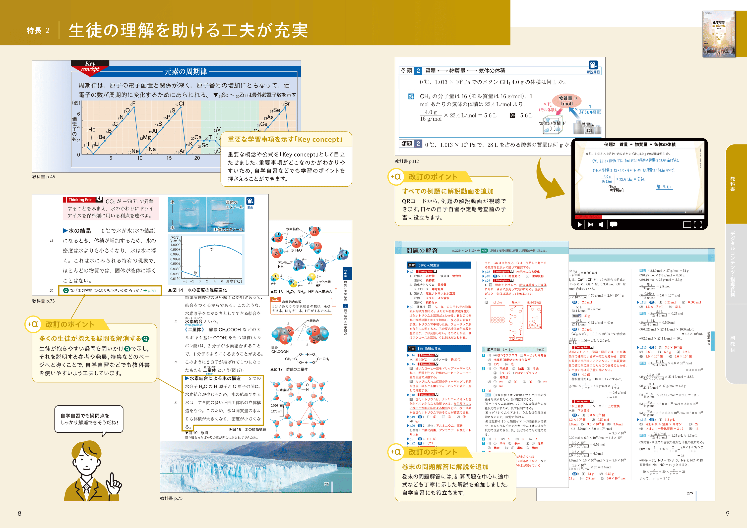 生徒のつまずきを防ぎ、疑問を解消できる工夫を随所に設けました。また、巻末の問題解答に解説を追加し、より自学自習しやすくなりました。
