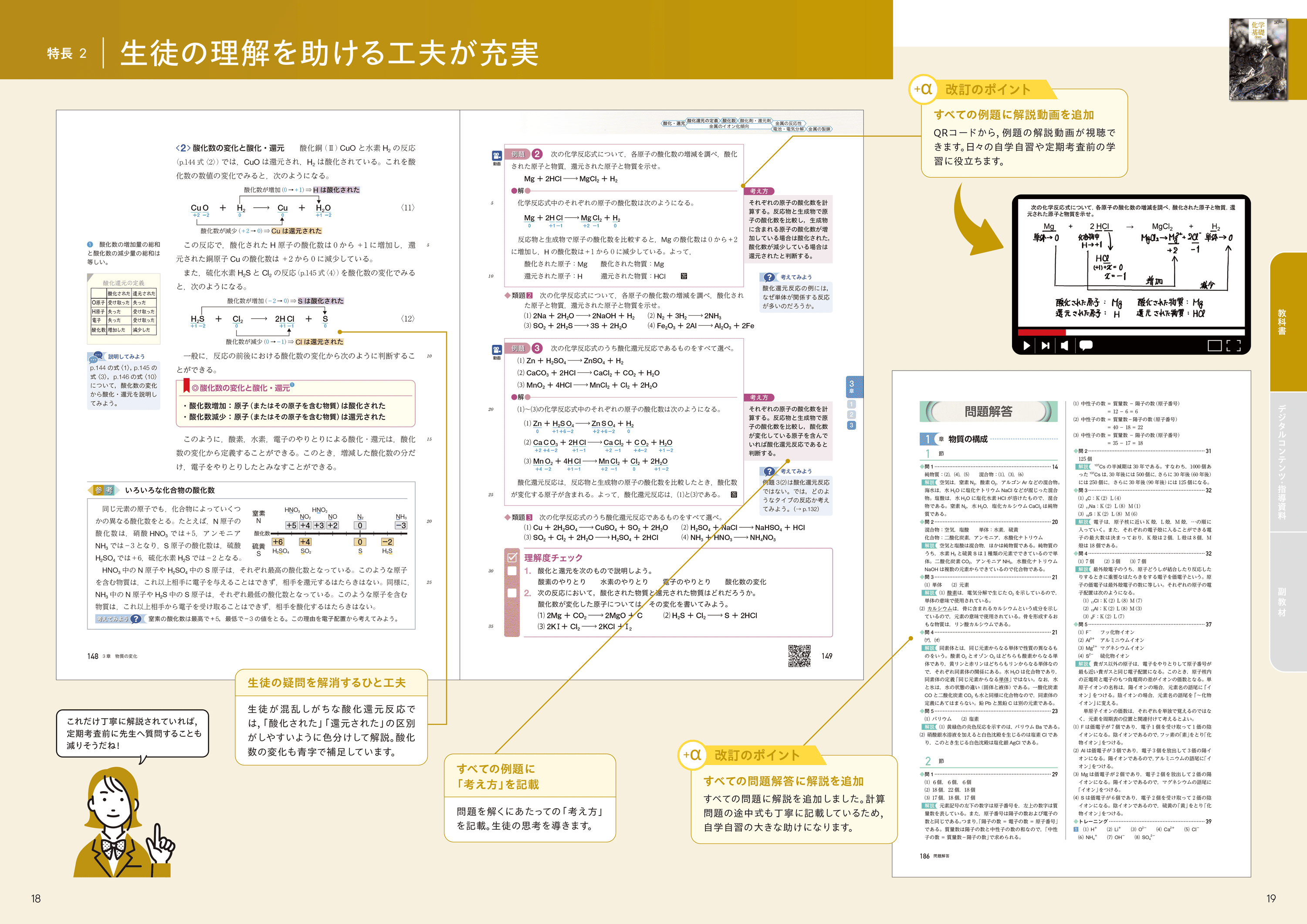 生徒のつまずきを防ぎ、疑問を解消する工夫を随所に設けました。また、問題解答に解説を追加し、より自学自習しやすくなりました。