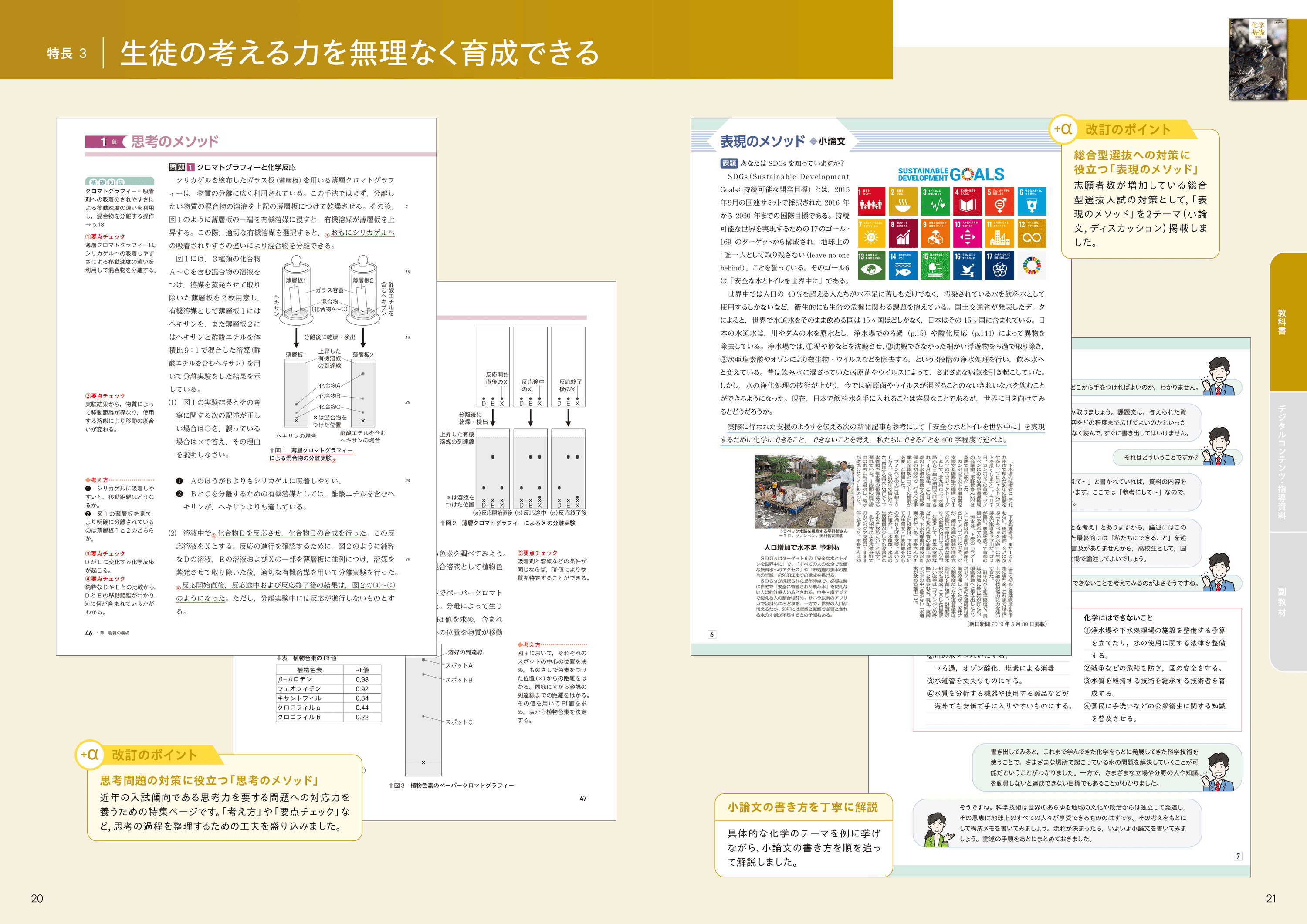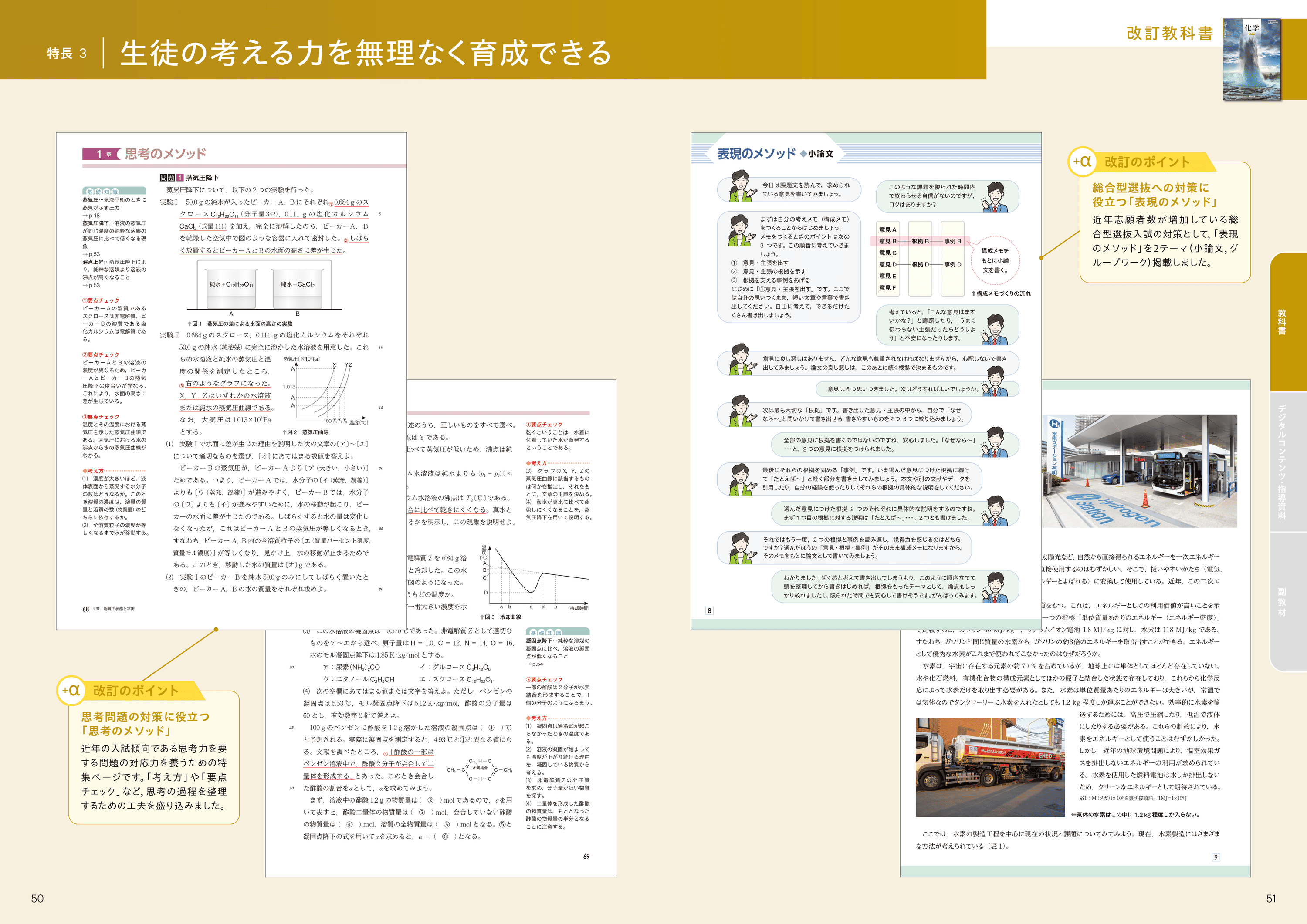 思考力を要する問題や随所に設けた問いかけで、生徒の考える力を養います。生徒の考える力を養う特集「思考のメソッド」「表現のメソッド」を新設しました。