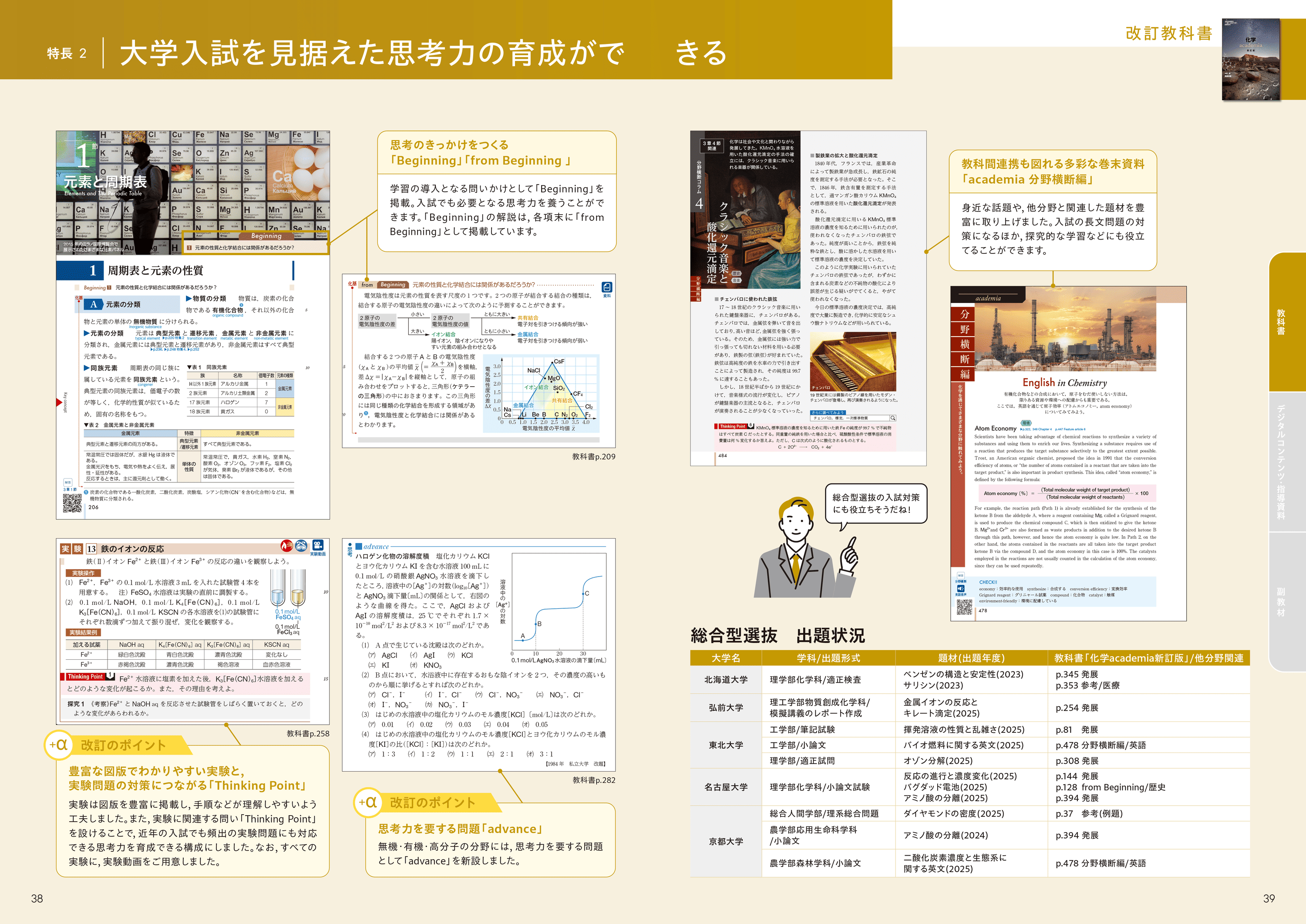 思考力を要する問題や随所に設けた問いかけで、生徒の考える力を養います。総合版選抜入試など、多様な入試形態に対応できる工夫を随所に設けました。