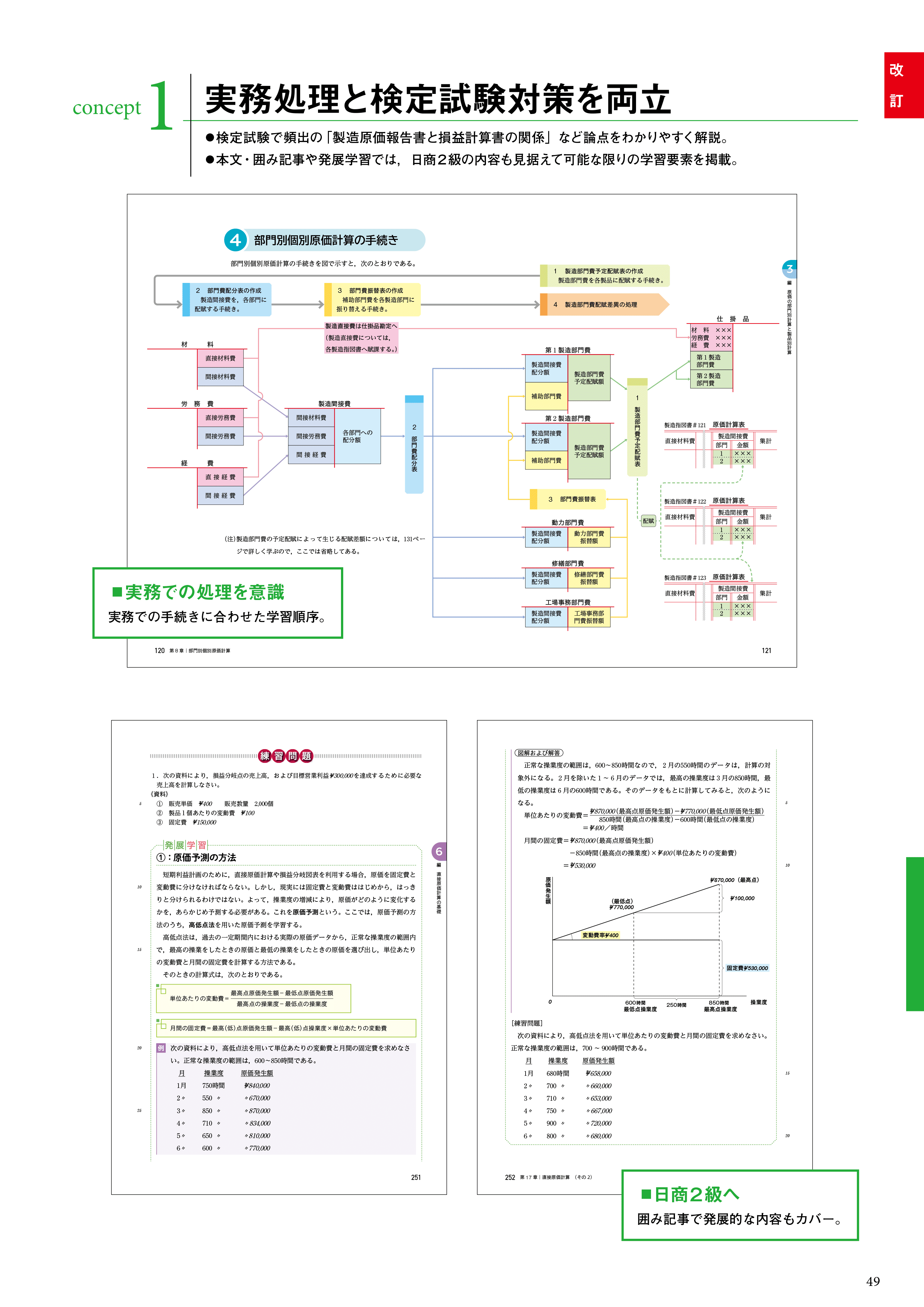 検定試験で頻出の「製造原価報告書と損益計算書の関係」など論点をわかりやすく解説。本文・囲み記事や発展学習では、日商2級の内容を見据えて可能な限り学習要素を掲載。