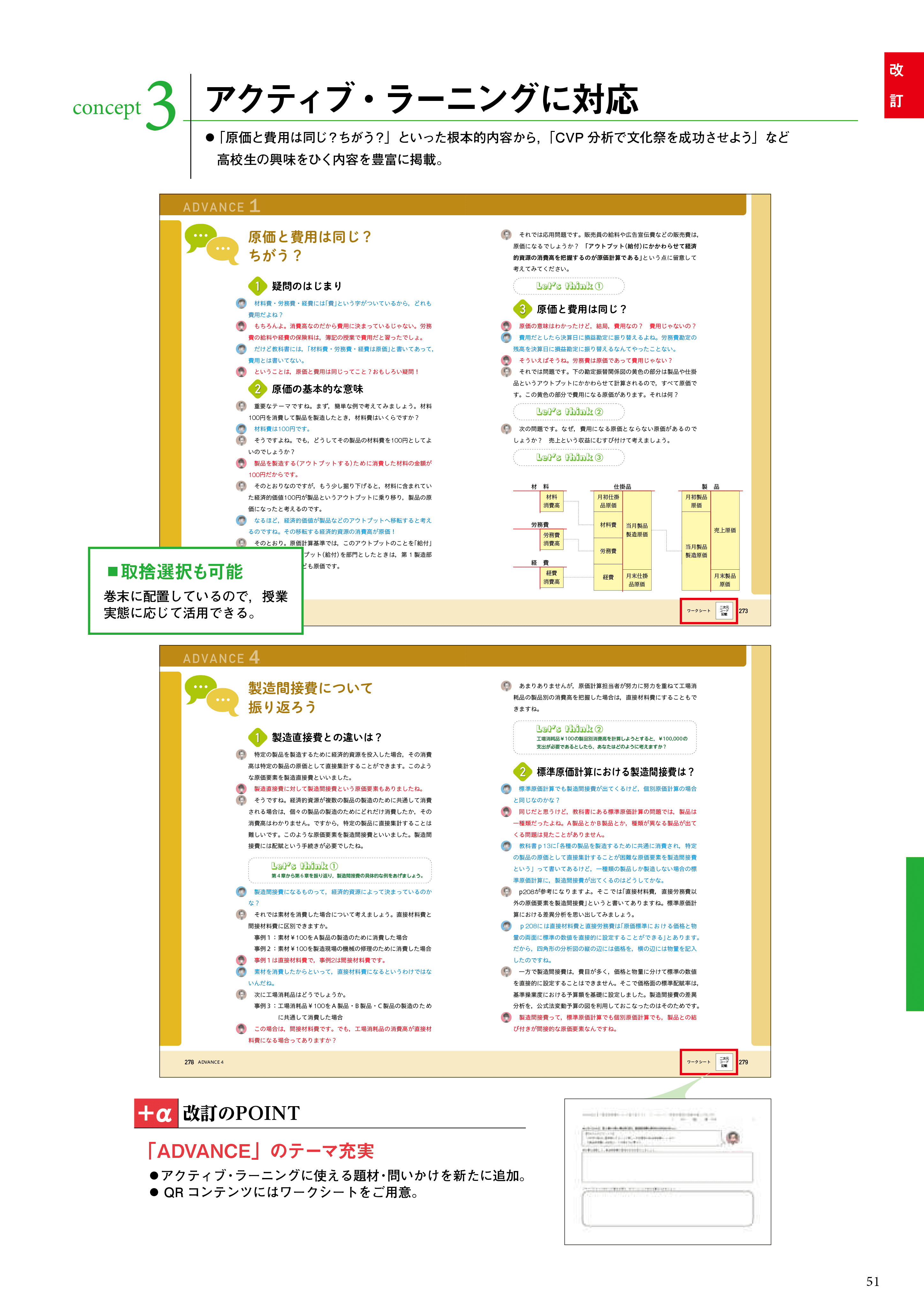 「原価と費用は同じ?」といった根本的内容から、「CVP分析で文化祭を成功させよう」など高校生の興味をひく内容を豊富に掲載。